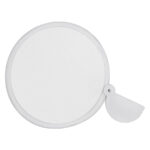 Abanico plegable de poliéster. Se guarda plegado en base semi-circular de plástico ABS. Simple, económico y fácil de imprimir o sublimar, ideal para promociones de verano.