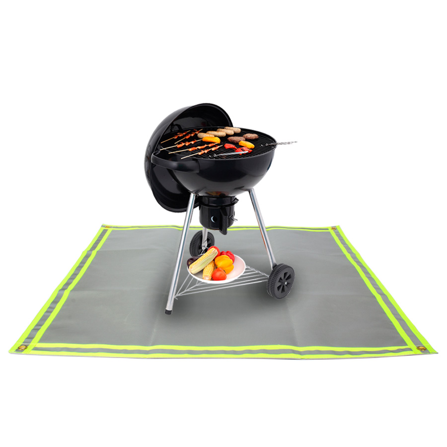 ¿Quieres evitar que las chispas y brasas de tu parrilla o brasero dañen tu piso? Te presentamos esta espectacular alfombra anti-flama de tela de Silicona Fibra de Vidrio, con borde de tela reflectante para ver en la oscuridad. Resiste temperaturas hasta 1.000°C (2.000°F), gracias a su capacidad de reflexión de calor del 96%. Contiene 4 ojetillos en los vértices, para fijar al pasto o tierra. Apilable, liviana, lavable y reutilizable.