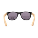 Deluxe Anteojos Lentes de Sol modelo «BAMBOO». Estuctura de plástico ABS con lentes de PVC ahumado y patas de madera de bamboo. Cuentan con protección solar certificada UV400. Presentación en bolsa compostable + caja de cartulina natural (kraft).