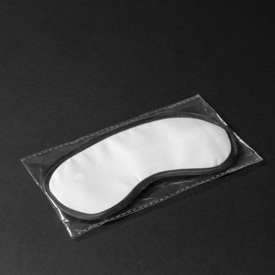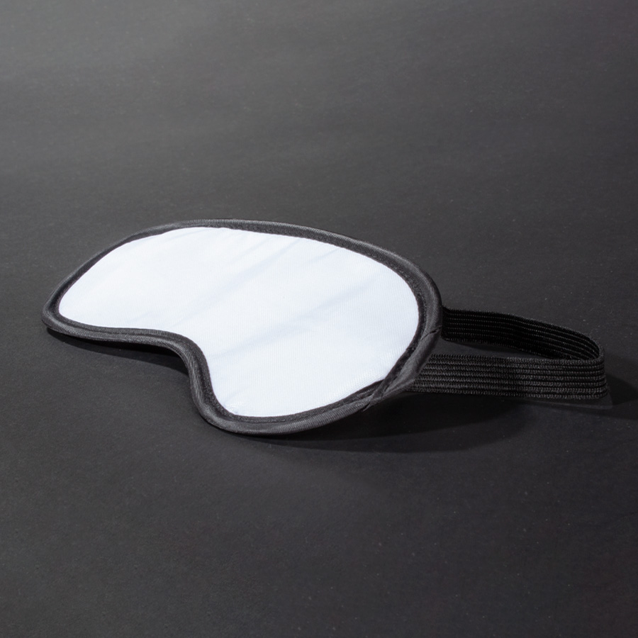Antifaz (máscara de descanso) de Poliéster blanco con base y elástico negros. Ideal para Sublimación.