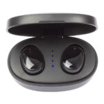 Audífonos Auriculares inalámbricos negros de Alta Fidelidad modelo «Echo». Cada auricular cuenta con un botón touch que permite subir y bajar el volumen, contestar y finalizar llamadas, reproducir y pausar música. Tienen tecnología Bluetooth 5.0, una duración de batería de aproximadamente 4 horas y un estuche de carga de 200 mAh, el cual se carga a través de un cable USB – Type C. Tiempo de Carga: 2 horas. Diámetro del Mando: 8MM, Sensibilidad: 93+-3dB, Impedancia: 32 Omega, Frecuencia: 20Hz-20KHz, Voltage de la Batería: 3.7V +- 0.5V, Distancia: 10m. Máxima Potencia: 5mW. Presentación en caja de regalo impresa a todo color.