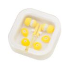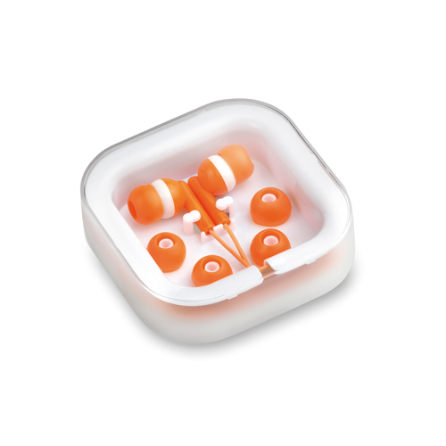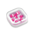 Prácticos y confortables auriculares intraurales de desenfadado diseño bicolor, conexión jack de 3,5mm y cable en color a juego. Presentados en elegante estuche de diseño y con almohadillas de recambio. Conexión Jack 3,5 mm