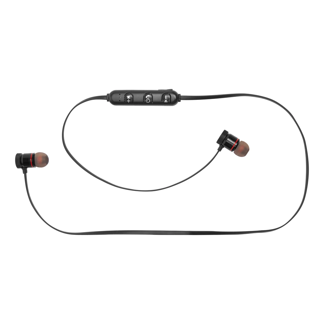 Plástico. Auriculares bluetooth. Cable de 70 cm aprox. Botones para aumentar / disminuir el volumen, aceptar y rechazar una llamada. Los audifonos son imantados. En uno de los costados entrada mini usb para recargar la batería. Estuche redondo de Eva Pouch. Incluye repuestos para los audífonos.