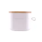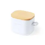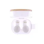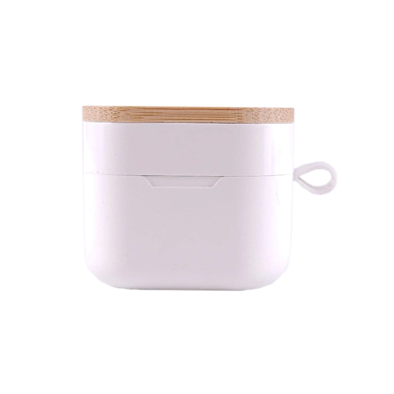 Auriculares inalámbricos fabricados en RABS, bambú y silicona. Cada auricular cuenta con un botón touch que permite contestar y finalizar llamadas, reproducir y pausar música, cambiar a la siguiente o anterior canción. Tienen tecnología Bluetooth 5.3, una duración de batería de aproximadamente 4 horas y un estuche de carga de 300 mAh, el cual se carga a través de un cable usb c. Los auriculares cuentan con almohadillas de diferentes tamaños.