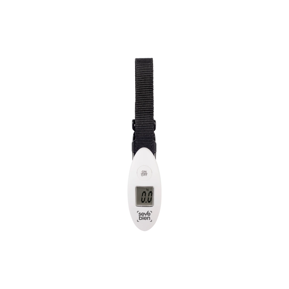 10,5 x 2,6 cm. Plástico. Balanza digital de mano, botón de off/on. Cuenta con una correa para enganchar en la manilla de la valija/bolso al elevar devuelve el peso. Peso máximo soportado 40 Kg. Presentación en caja de regalo.