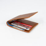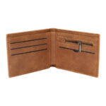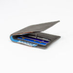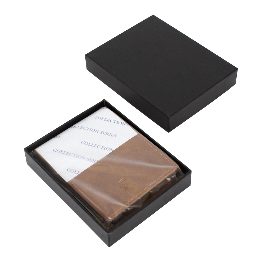 Billetera de eco-cuero, modelo «GEORGIA». Contiene 6 compartimentos interiores, uno de ellos con cremallera. Presentación en bolsa frozen y caja de cartón forrado negro opaco.