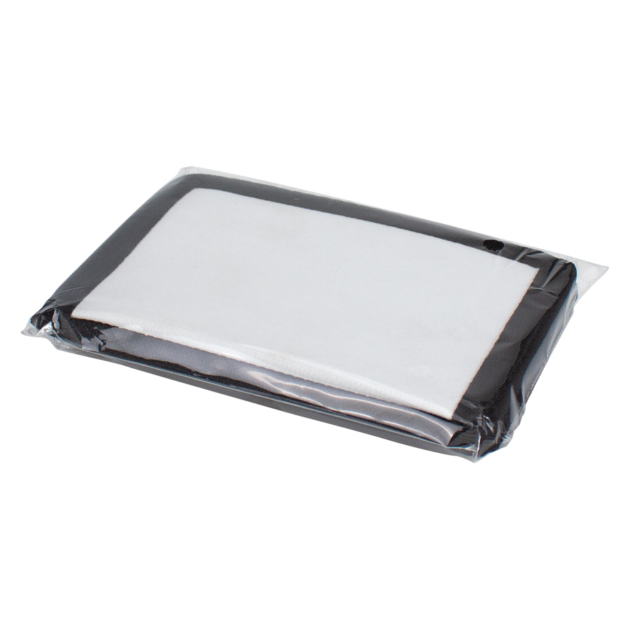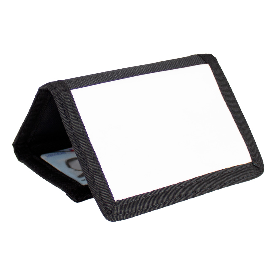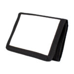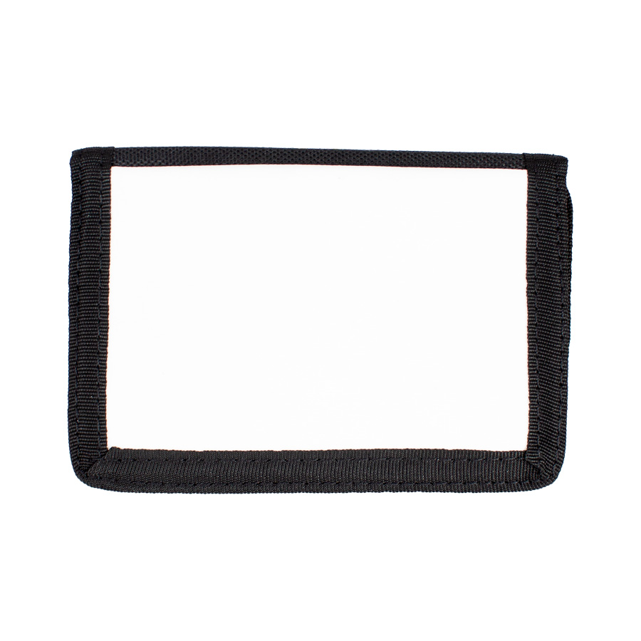 Billetera de nylon y poliéster color negro, con ventana de nylon blanco de 10.2 x 6.8 cm, para Sublimación. Presentación en bolsa PP translúcido.