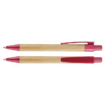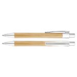 Bolígrafo modelo «Sustenta». Cuerpo de madera de Bamboo, terminales de plástico PET reciclado. Escritura azul.