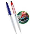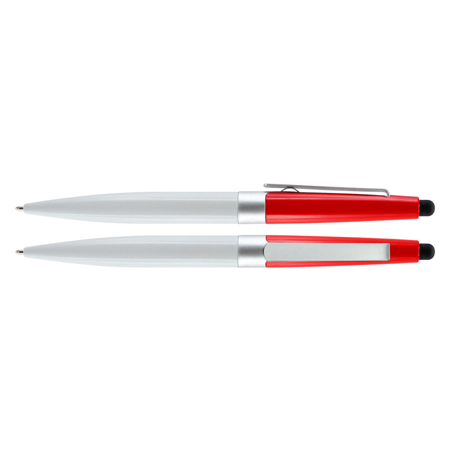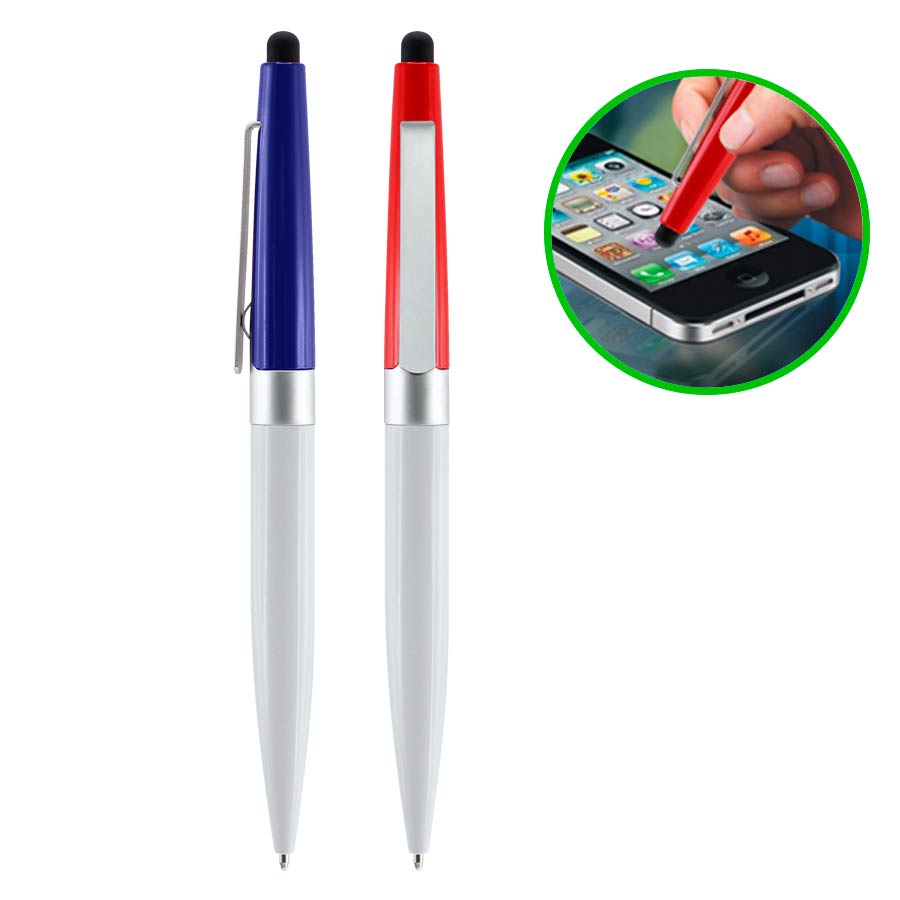 Bolígrafo modelo «Biarritz», mitad metálico/mitad plástico, incluye puntero Touch-Screen. Escritura negra.