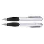 Bolígrafo plástico con linterna LED. Escritura Azul.