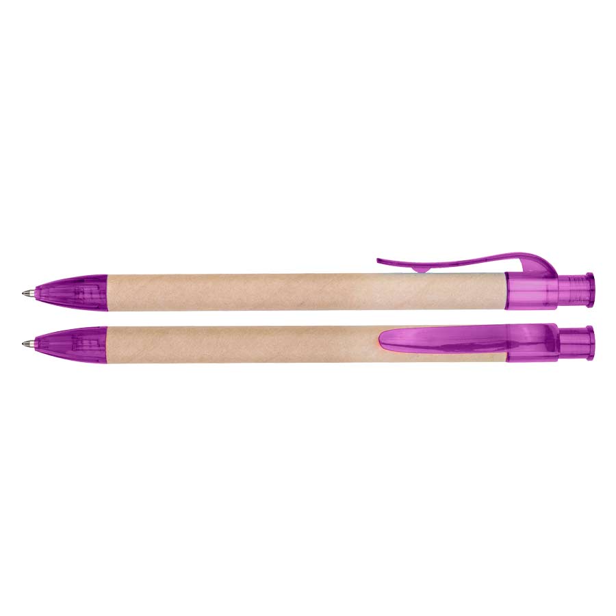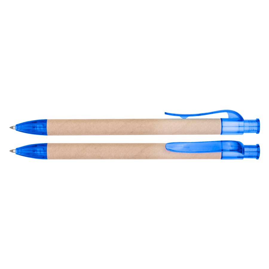 Bolígrafo Ecológico «Planet» de cartón reciclado, con terminales de color traslúcido. Escritura azul.