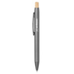 Elegancia en tus manos.Bolígrafo retráctil. Cuerpo metálico en diferentes colores acabado mate. Clip metálico, puntera plástica color gris y pulsador de bambú. Medidas: 14 cm.