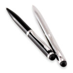 Bolígrafo Metálico modelo «Hotel», con goma posterior negra «Touch-Screen» para pantalla táctil. Escritura negra.