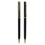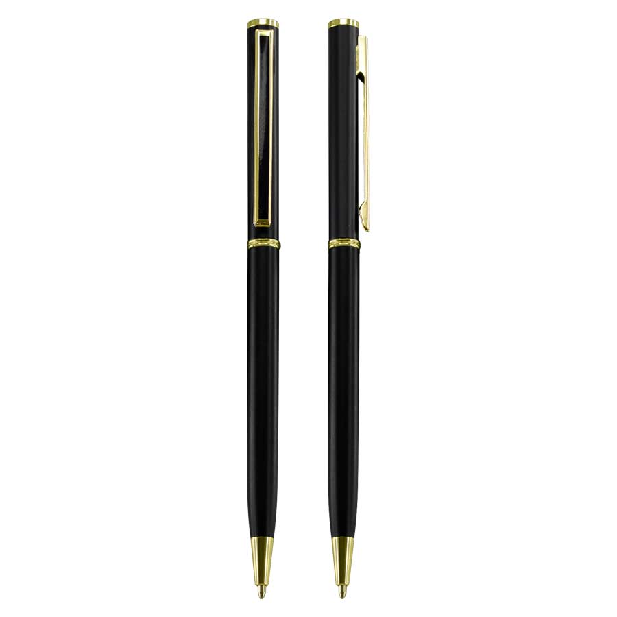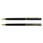 Bolígrafo Metálico negro «Tourist», con terminales dorados. Especial para el rubro Hotelería y Turismo. Escritura negra.