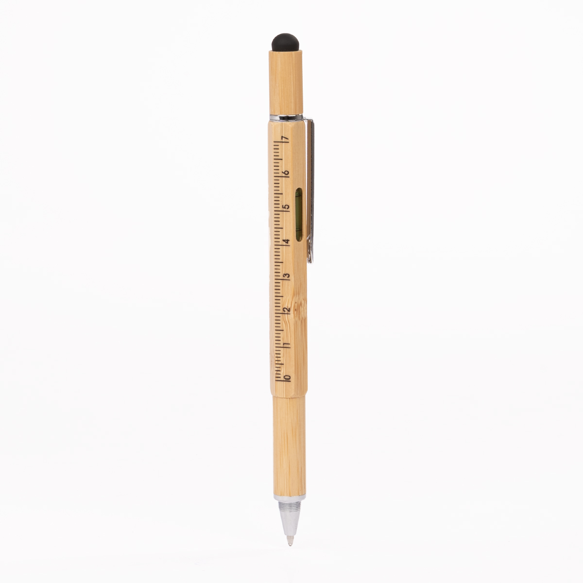 MINDO combina versatilidad y conciencia ecológica en una sola herramienta. Hecho de bambú proveniente de fuentes gestionadas responsablemente, este bolígrafo multifunción incluye regla, nivel de burbuja y destornillador de doble cabeza en un diseño compacto e inteligente. Con detalles cromados y punta touch negra, MINDO es ideal para personalizar y regalar a quienes valoran soluciones prácticas y sostenibles.
