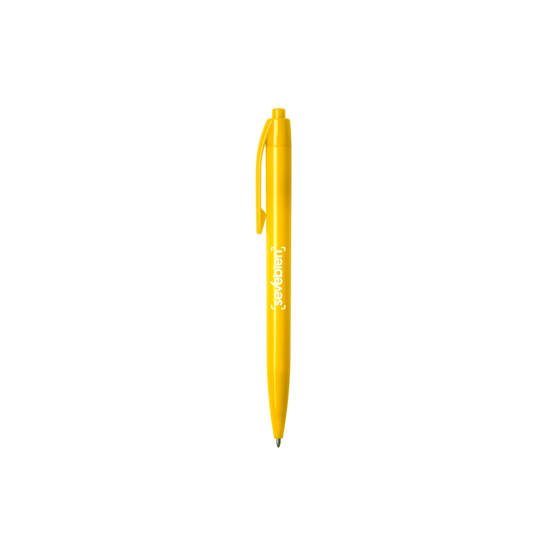 Plástico. Bolígrafo con cuerpo plástico de color con pulsador. Tinta azul.