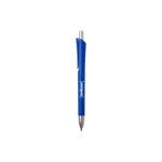 Plástico. Bolígrafo con cuerpo plástico de color, botón pulsador y punta color plata. Tinta azul.