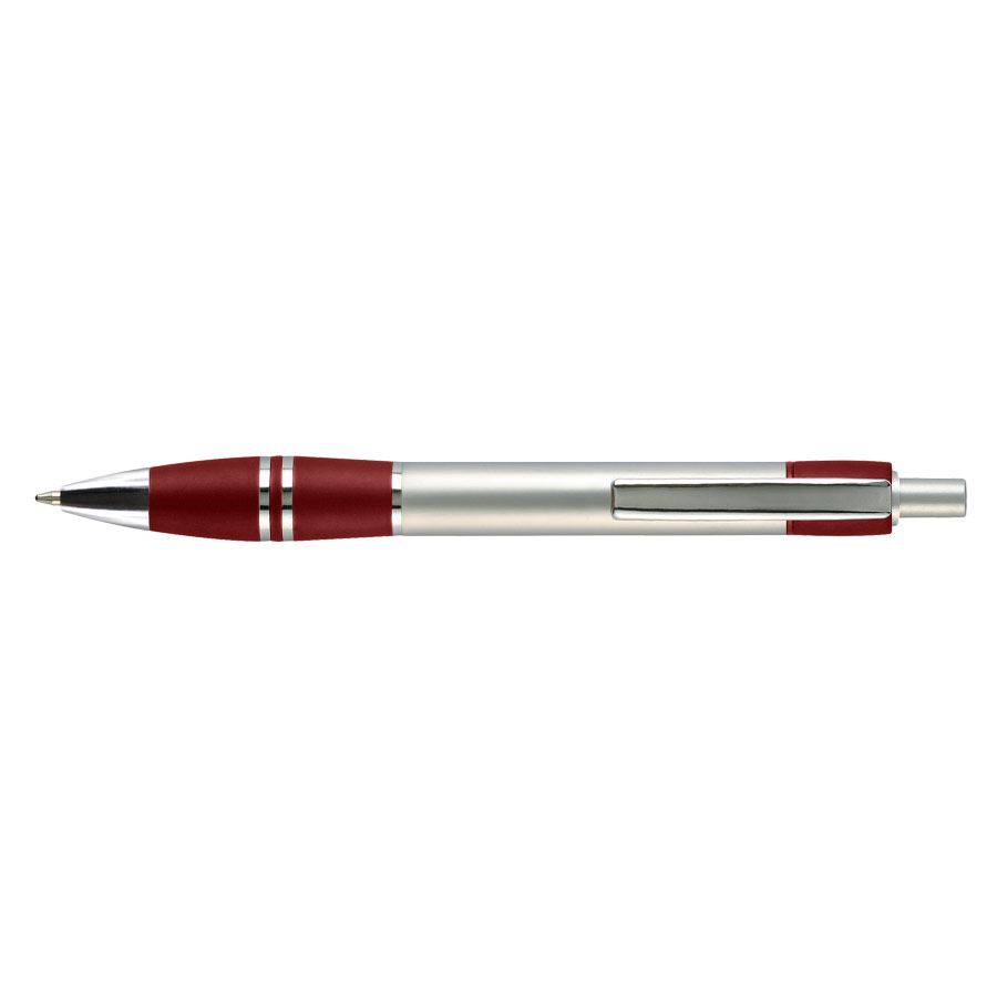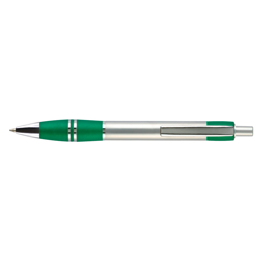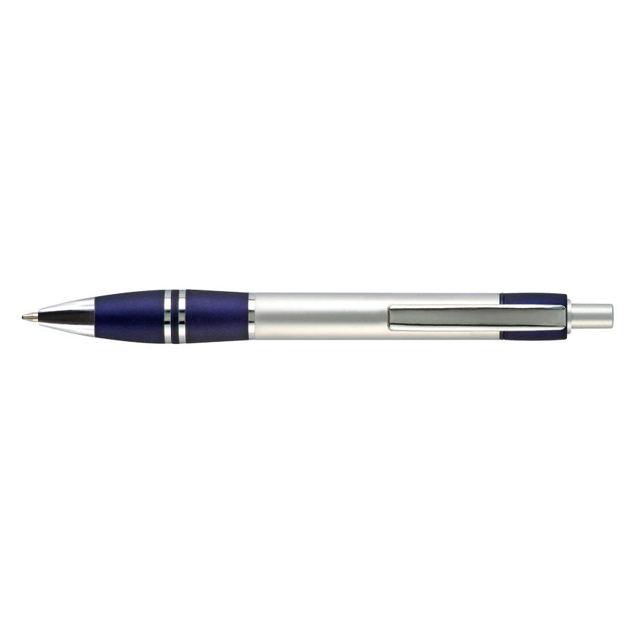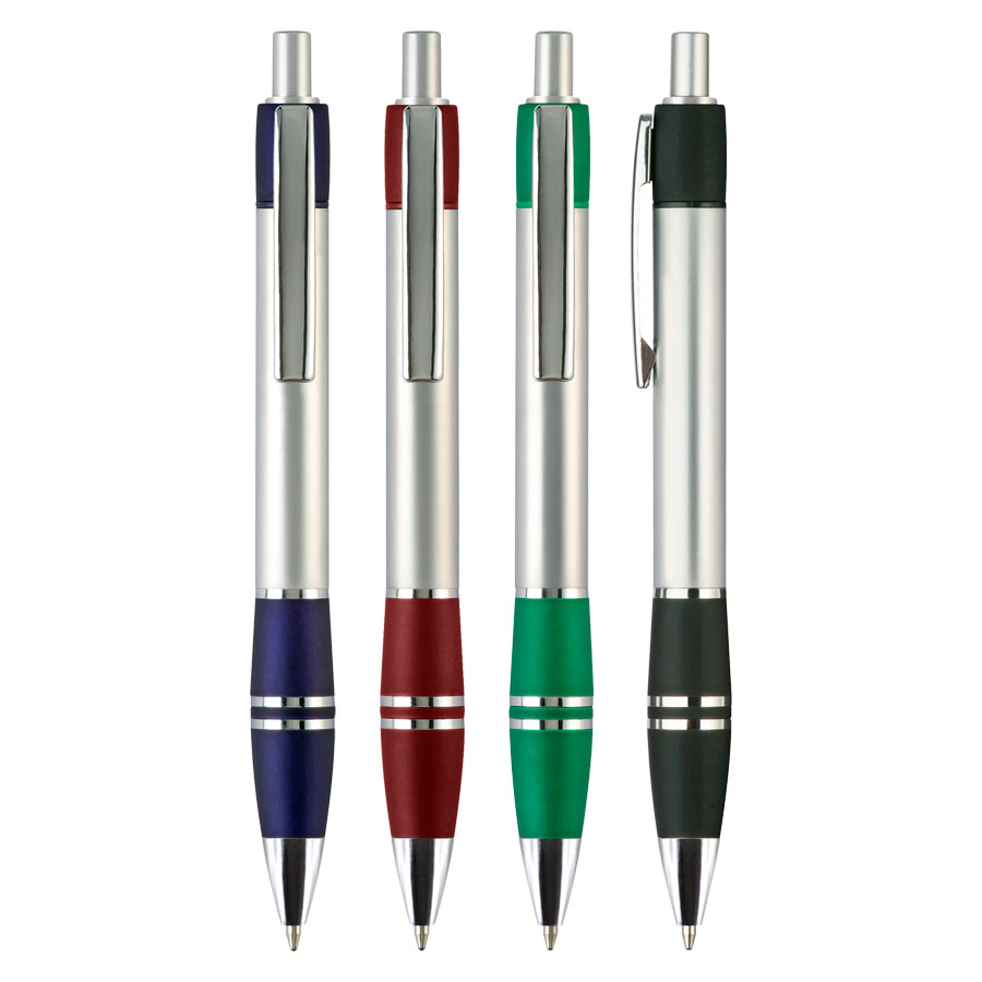 Bolígrafo plástico metalizado «Active» con goma anti-deslizante de color. Escritura Azul.