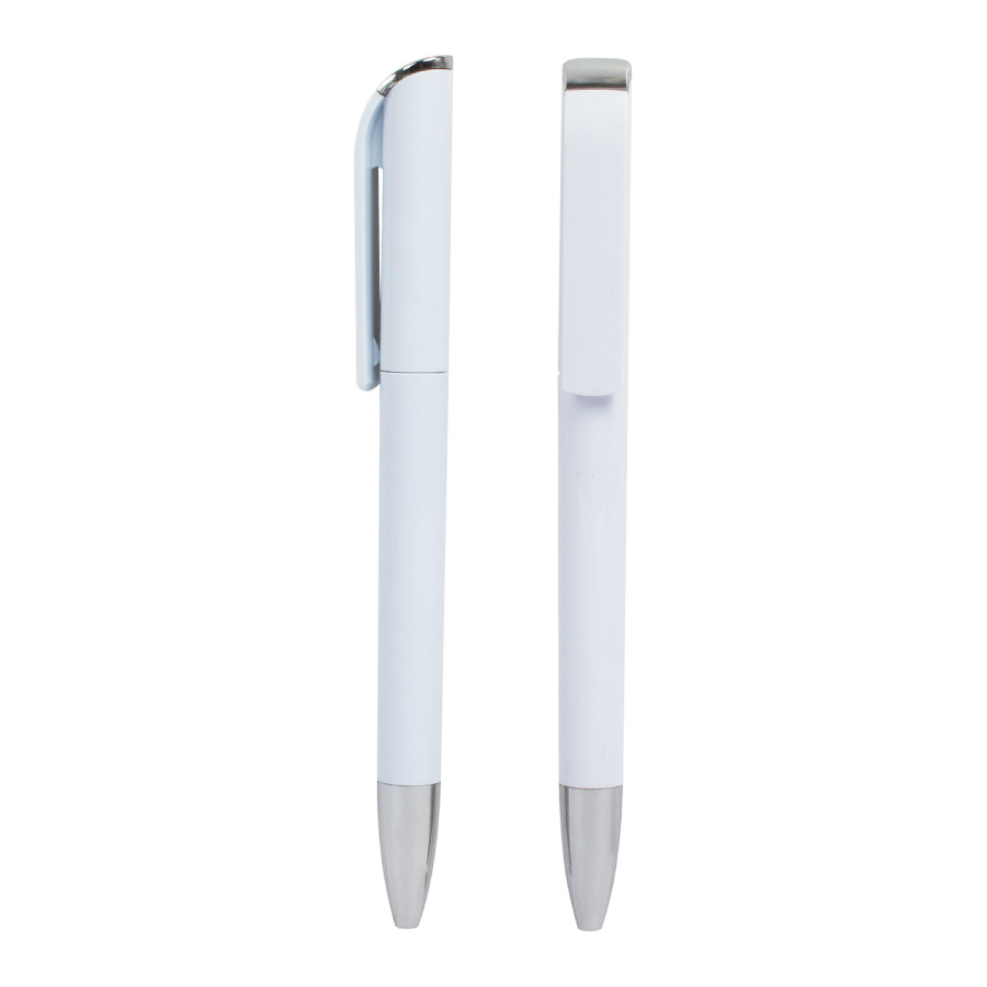 Bolígrafo blanco «Angel», con clip ancho plano, especial para imprimir sobre él. Escritura azul.