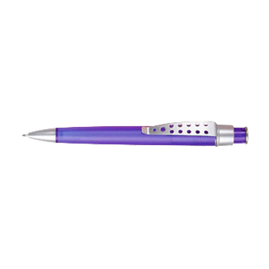 Bolígrafo plástico color frozen modelo «Evolution» con clip metálico con orificios. Escritura azul.