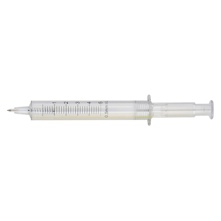 Bolígrafo plástico promocional «Jeringa». Escritura Azul.