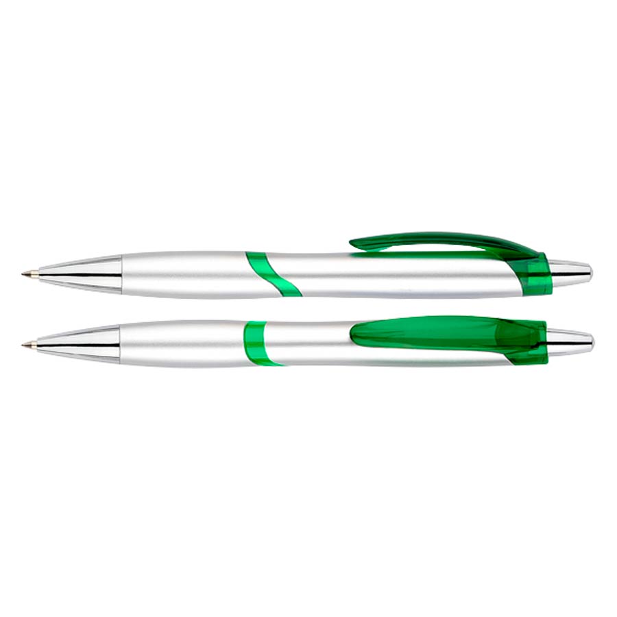 Bolígrafo plástico plateado «Júpiter». Escritura Azul.