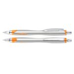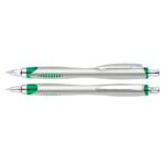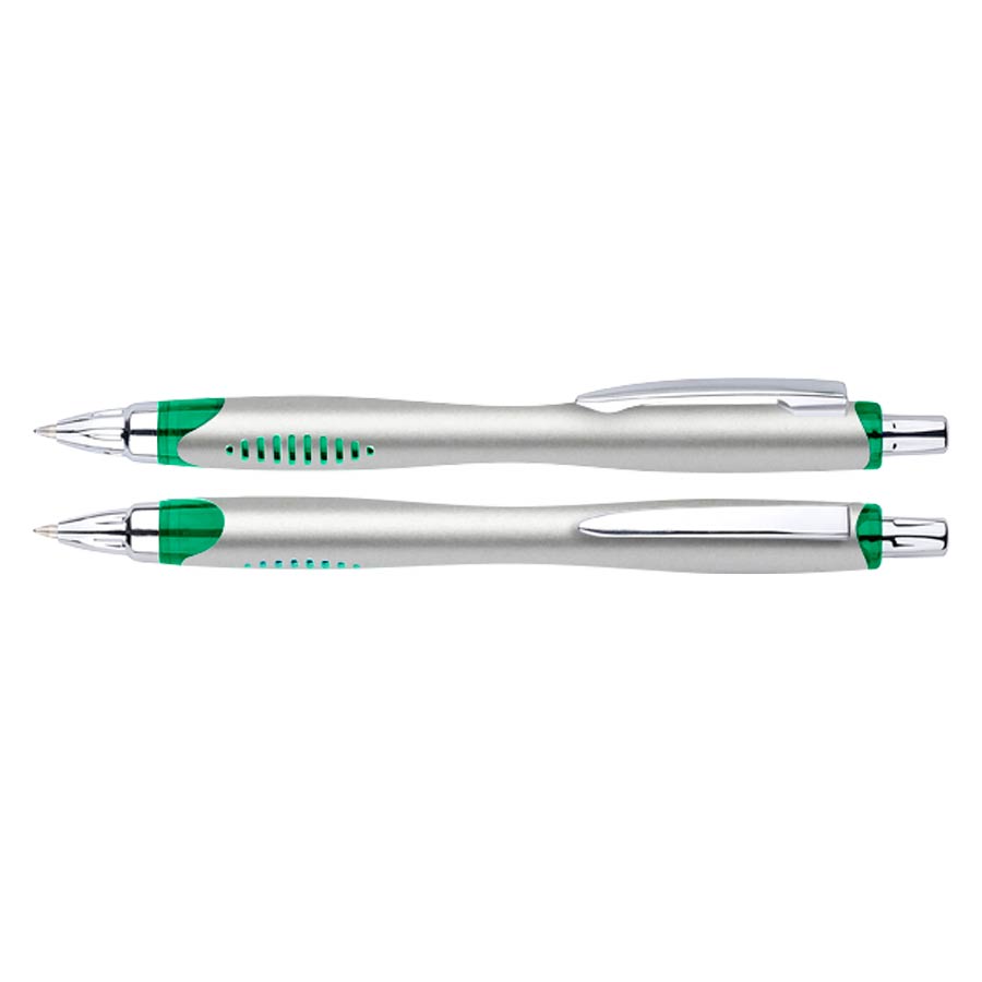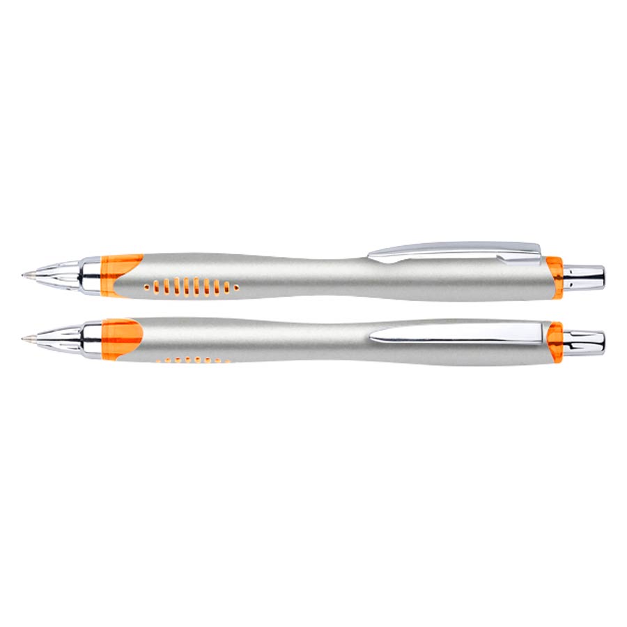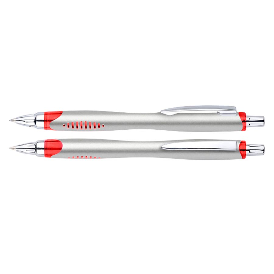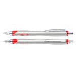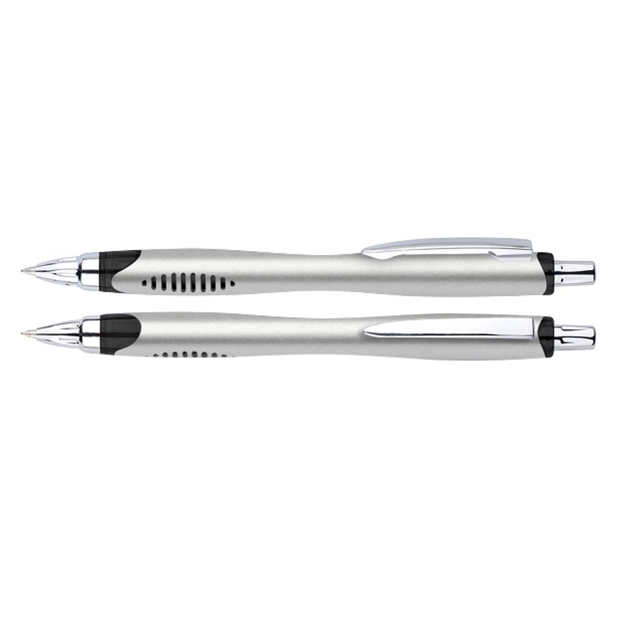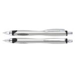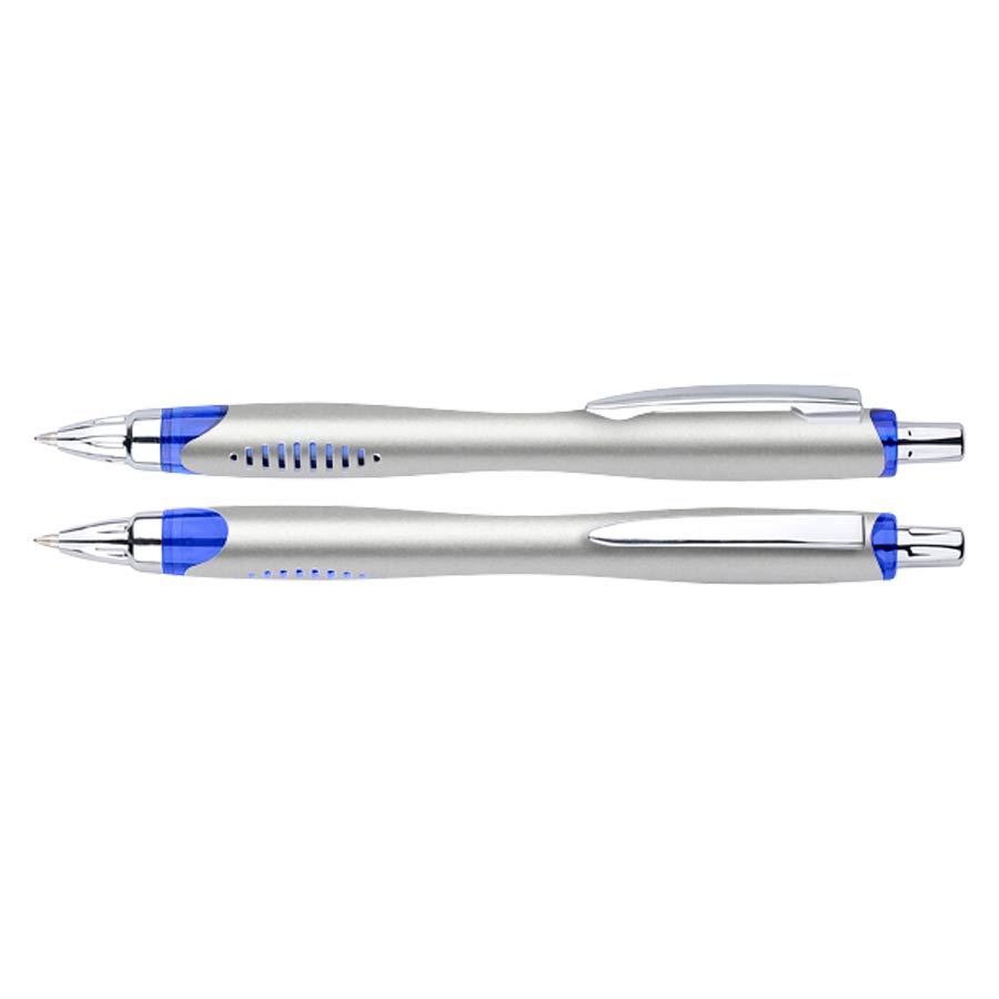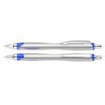 Bolígrafo plástico plateado «Motion». Escritura Azul.