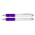 Bolígrafo plástico metalizado «Qasar» con goma de color. Escritura azul.