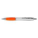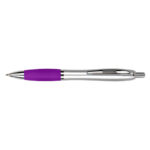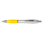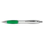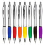 Bolígrafo plástico plateado con goma de color, modelo «Wind Satin». Escritura Azul. El Bolígrafo más famoso del mundo.