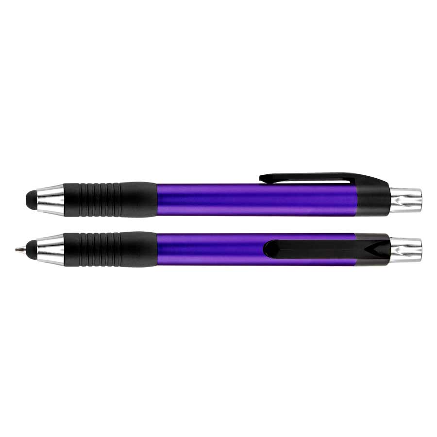 Bolígrafo «Trek» con cuerpo de color metalizado y puntero touch-screen para pantalla táctil. Escritura azul.