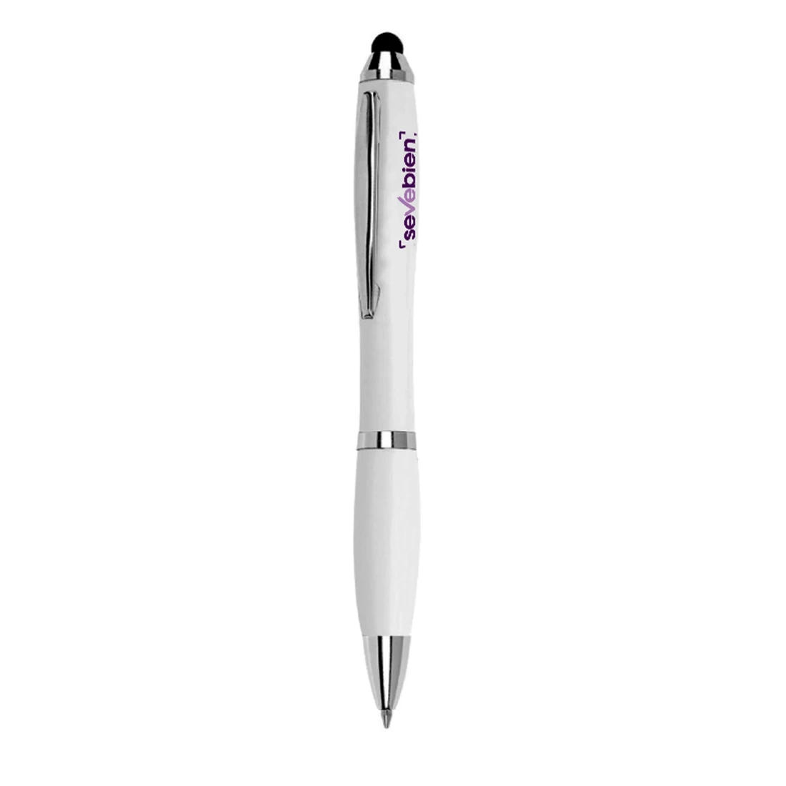 Ø 0,5 x 13,5 cm. Bolígrafo plástico giratorio con detalles metálicos. Clip metálico. Puntero para pantallas táctiles. Tinta azul.