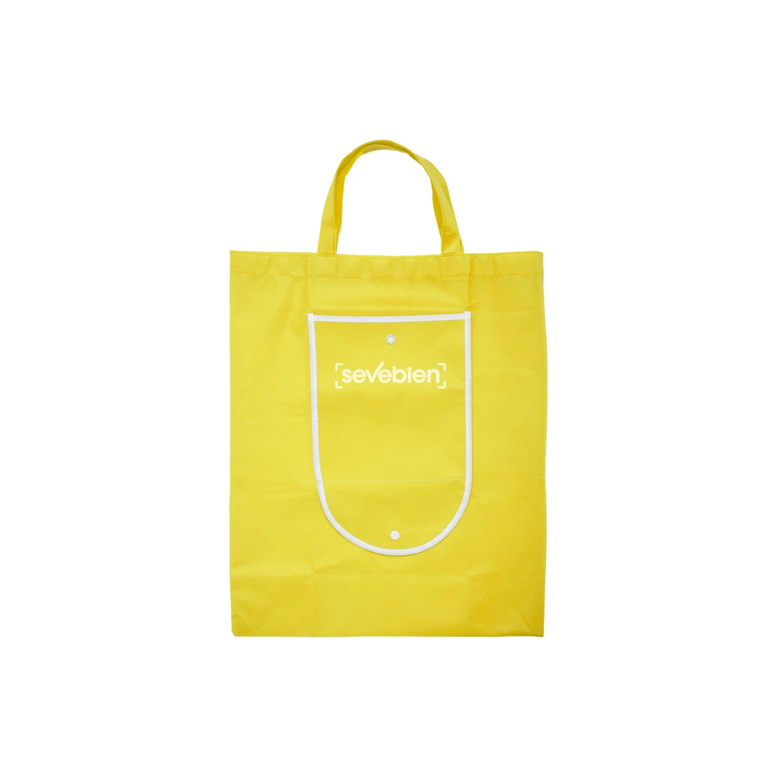 40 x 47.5 cm (abierta) / 20,5 x 12 cm (cerrada)-Non-woven. Bolsa que posee un bolsillo frontal con vivos blancos alrededor y un cierre de botón.Mayor resistencia debido a que son cosidas.