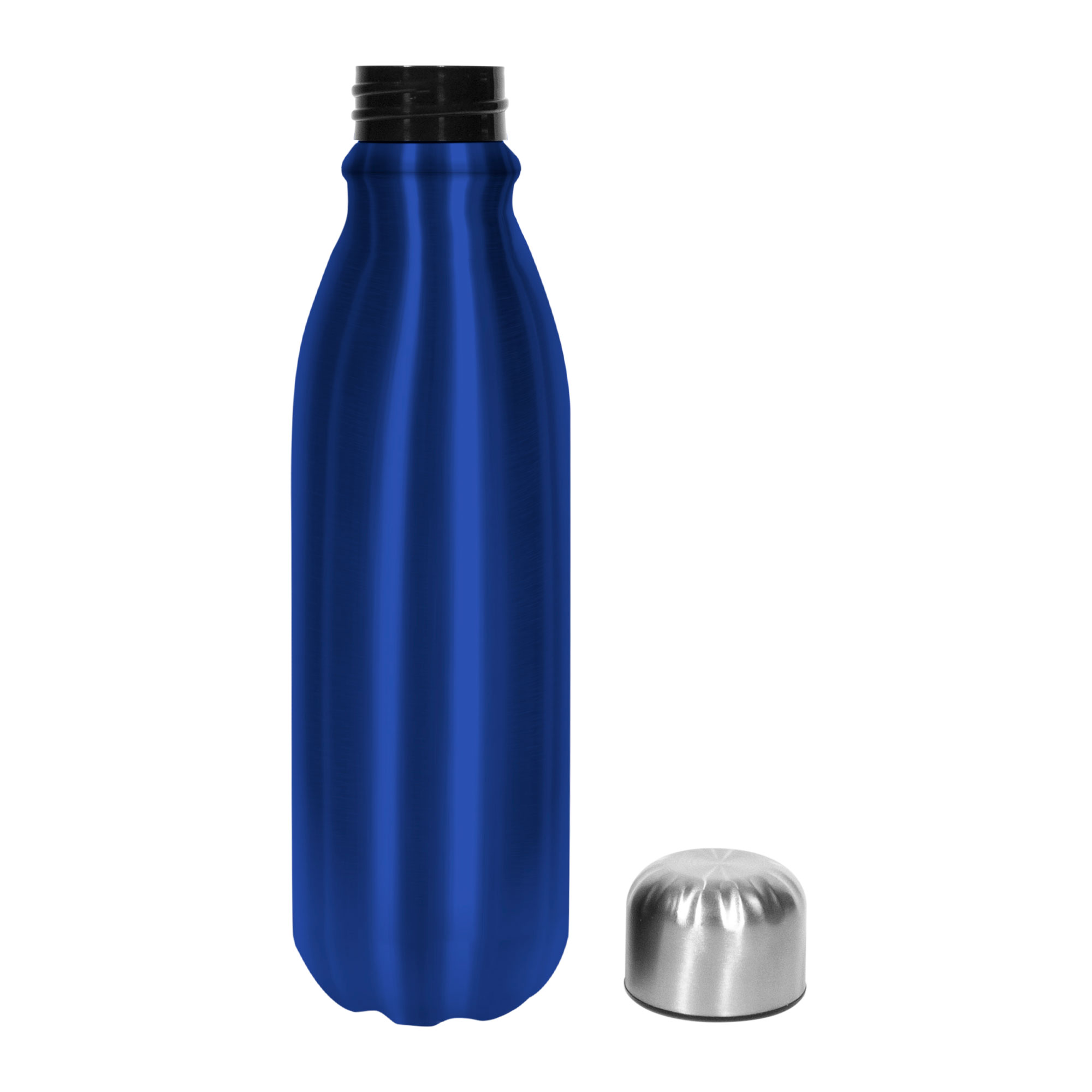 Ø 6 x 22,5 cm. Capacidad 550 ml. Aluminio. Botella de aluminio, cuerpo de diferentes colores.Tapa de acero a rosca.