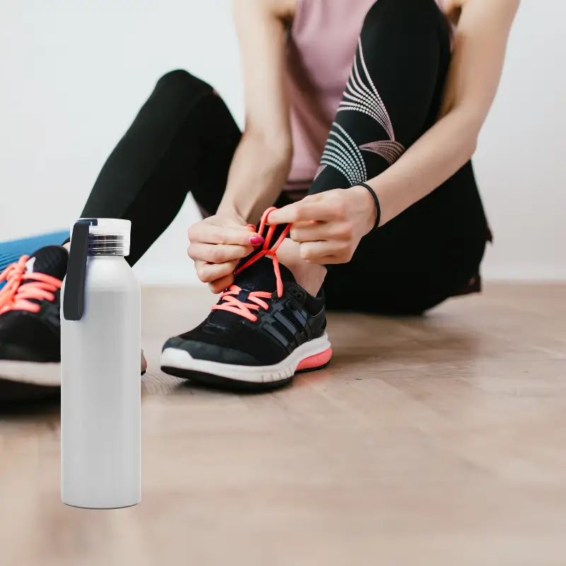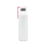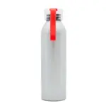 Sport Bottle realizada en aluminio, incluye banda colgante de silicona en colores. Medidas: 23 cm x Diámetro 6,5 cm. Capacidad: 600 ml.