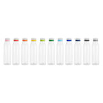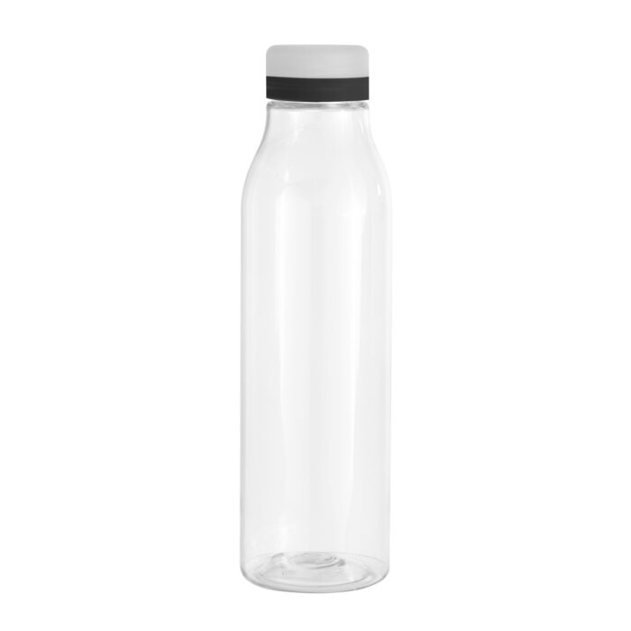 Frescura a tu lado.Botella de plástico transparente con tapa a rosca esmerilada con anillo de silicona de diferentes colores.Medidas: Ø 7 x 24,5 cm.