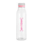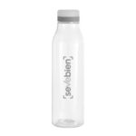 Frescura a tu lado.Botella de plástico transparente con tapa a rosca esmerilada con anillo de silicona de diferentes colores.Medidas: Ø 7 x 24,5 cm.