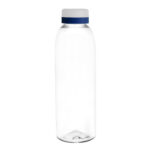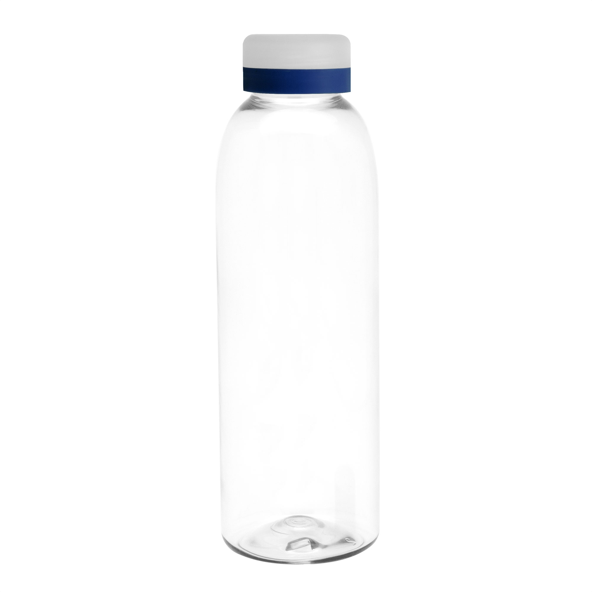 Diseño práctico para un uso diario.Botella de plástico transparente con tapa a rosca esmerilada con anillo de silicona de diferentes colores.Medidas: Ø 7 x 23 cm.