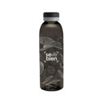 Diferencia tu estilo en un diseño con personalidad.Botella de plástico de color negro translúcido con tapa a rosca color negro mate con anillo de silicona de diferentes colores.Medidas: Ø 7 x 23 cm.
