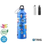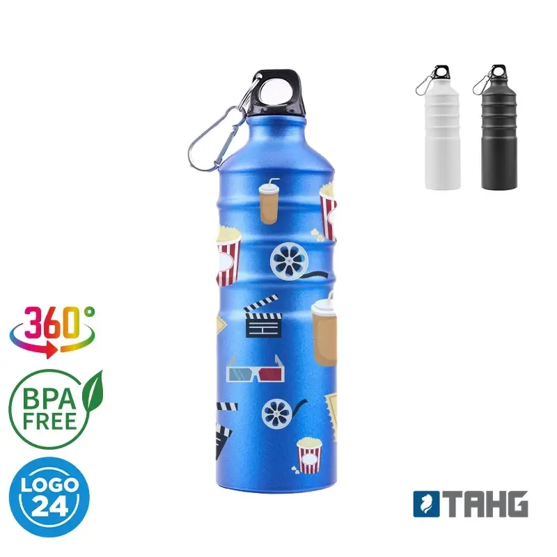 Sport Bottle reutilizable de aluminio con tapa rosca de PP y silicona. Cuenta con una tapa con agarre para facilitar su transporte. Producto libre de BPA.