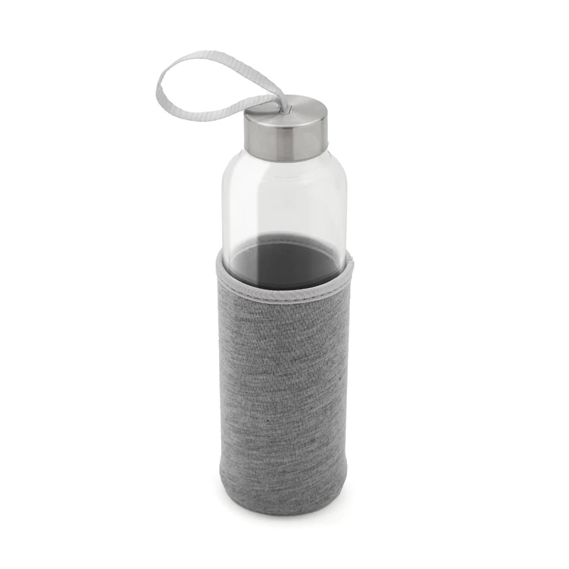 Botella fabricada en vidrio borosilicato, un material resistente y duradero. Cuenta con una funda protectora de neopreno brindando un diseño práctico que protege contra golpes. Su tapa a rosca incluye una cinta integrada, ideal para un transporte cómodo y seguro. Con una capacidad de 550 ml, es perfecta para mantenerte hidratado durante tus actividades al aire libre o en la rutina diaria.