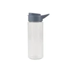 Botella transparente reutilizable de PET con tapa de Polipropileno, cuenta con un agarre en la tapa para su transporte. Producto libre de BPA. No es apta para bebidas calientes, lavavajillas ni microondas. Medida: 18.5 cm x diámetro 6.5 cm. Capacidad: 600ml. Reuseme