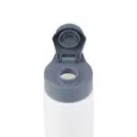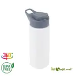 Botella reutilizable de PET con tapa de Polipropileno, cuenta con un agarre en la tapa para su transporte. Producto libre de BPA. No es apta para bebidas calientes, lavavajillas ni microondas. Capacidad: 600ml.