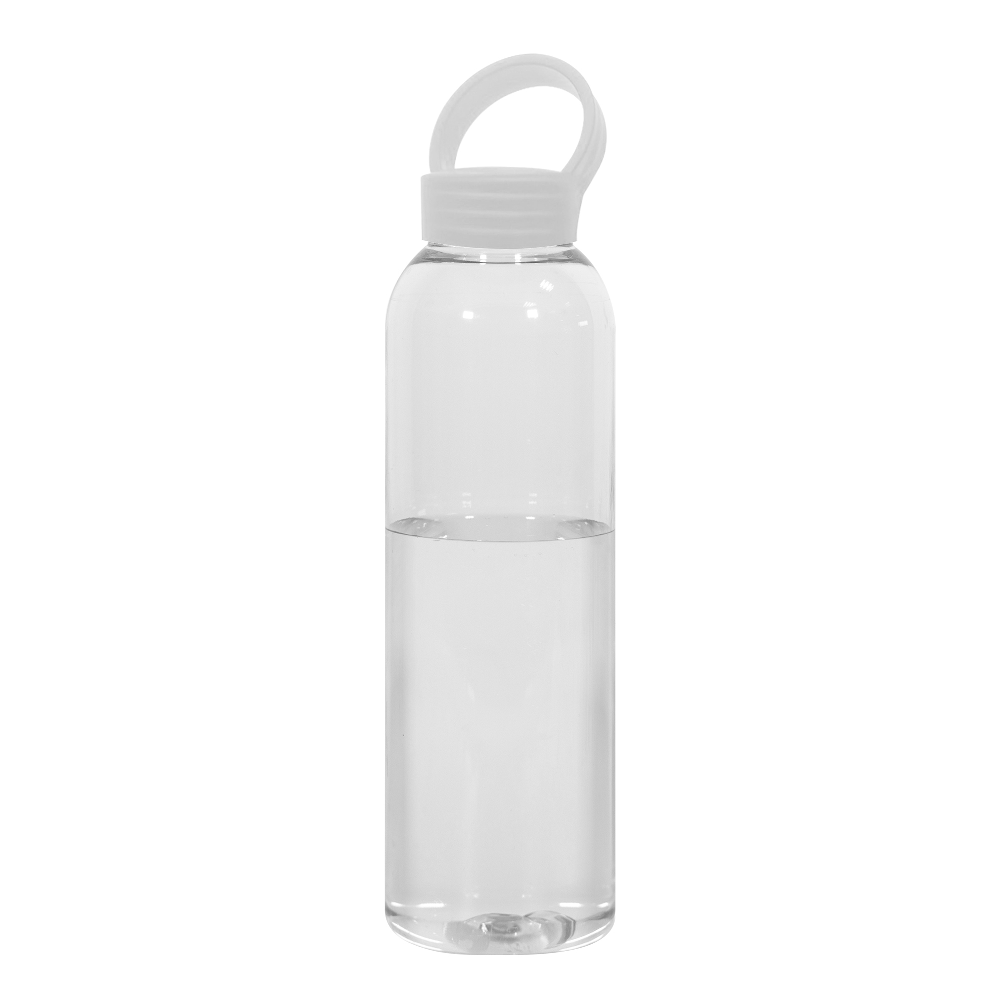 Botella de plástico transparente con tapa a rosca plástica.