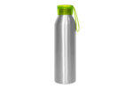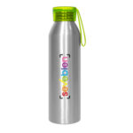 Ø 6,6 x 23 cm. Capacidad 600 ml. Aluminio. Cuerpo color plata, tapa de color traslucida con tira de silicona (de 8 cm) del mismo color. Ideal para hidratarte todos los días. Presentación en caja de regalo.