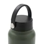 Botella isotérmica de 1000 ml, con doble pared de acero inoxidable 18/8, pintura en polvo y base de silicona antideslizante, mantiene tus bebidas frías durante 12 horas y calientes durante 8 horas. Cuenta con dos tapas negras a rosca, para que utilices la que te resulte más cómoda: la primera, con boquilla y anillo para facilitar el agarre, y la segunda con manija para transportarla. Incluye 2 sorbetes y cepillo limpiador.