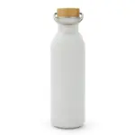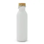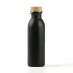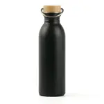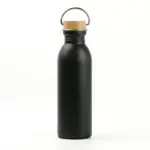 Botella de acero 304 con tapa de bamboo. Cuenta con una manija de agarre sobre su tapa para fácil transporte y tiene una capacidad de 600ml. Ideal para actividades deportivas.