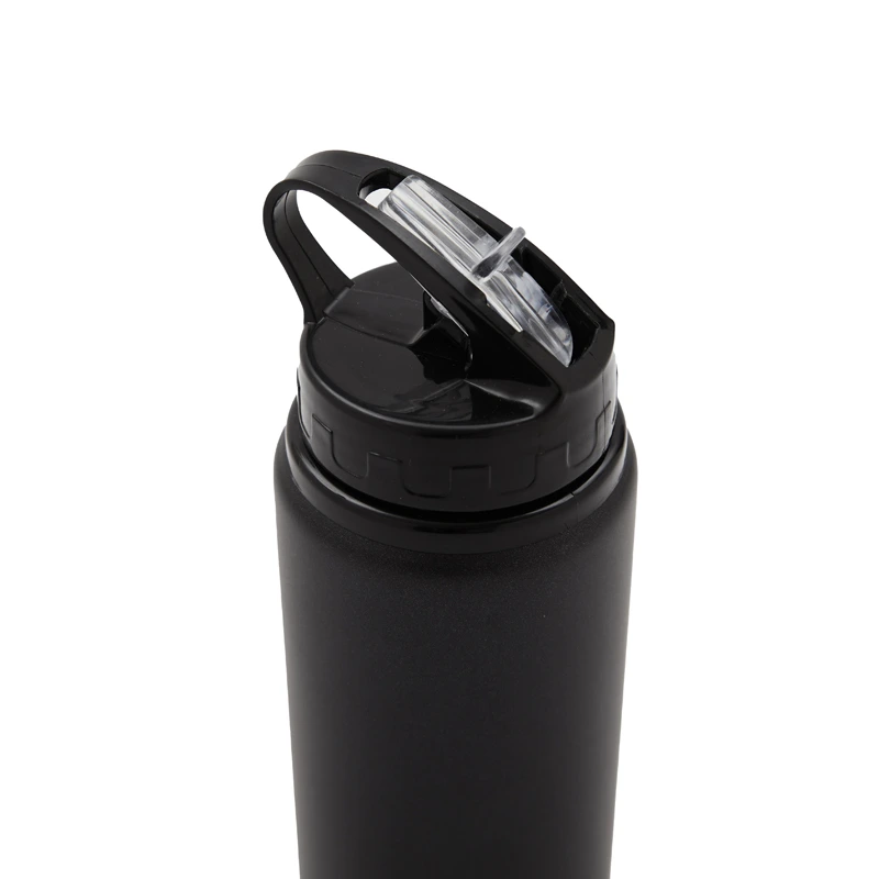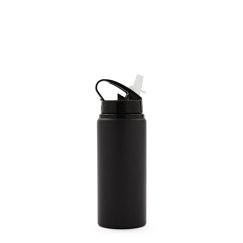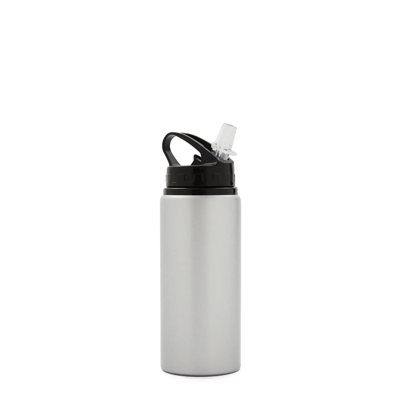 Botella de aluminio con capacidad de 600 ml. Tapa a rosca con boquilla y con agarre, para facilitar su transporte. El producto viene en una bolsa de PLA 100% compostable. Ideal para deporte o uso diario. Dimensiones: 21 x 7 cm.