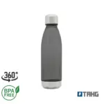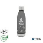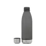 Botella realizada en pet con base y tapa a rosca de acero inoxidable.