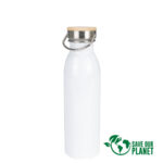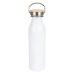 Botella blanca con cuerpo blanco para sublimación, de una sola pared de Acero inoxidable 304 SS. Producto BPA FREE, para el contacto con líquidos y alimentos. Tapa rosca de Acero inoxidable 304 SS y bamboo, con gancho de sujeción de Acero inoxidable 304 SS. Capacidad 750ml. Presentación en bolsa plástica + caja de regalo de cartón blanco. OJO: esta botella NO es térmica, se recomienda usar sólo con líquidos fríos. No llenar con lácteos o bebidas gaseosas.