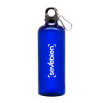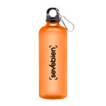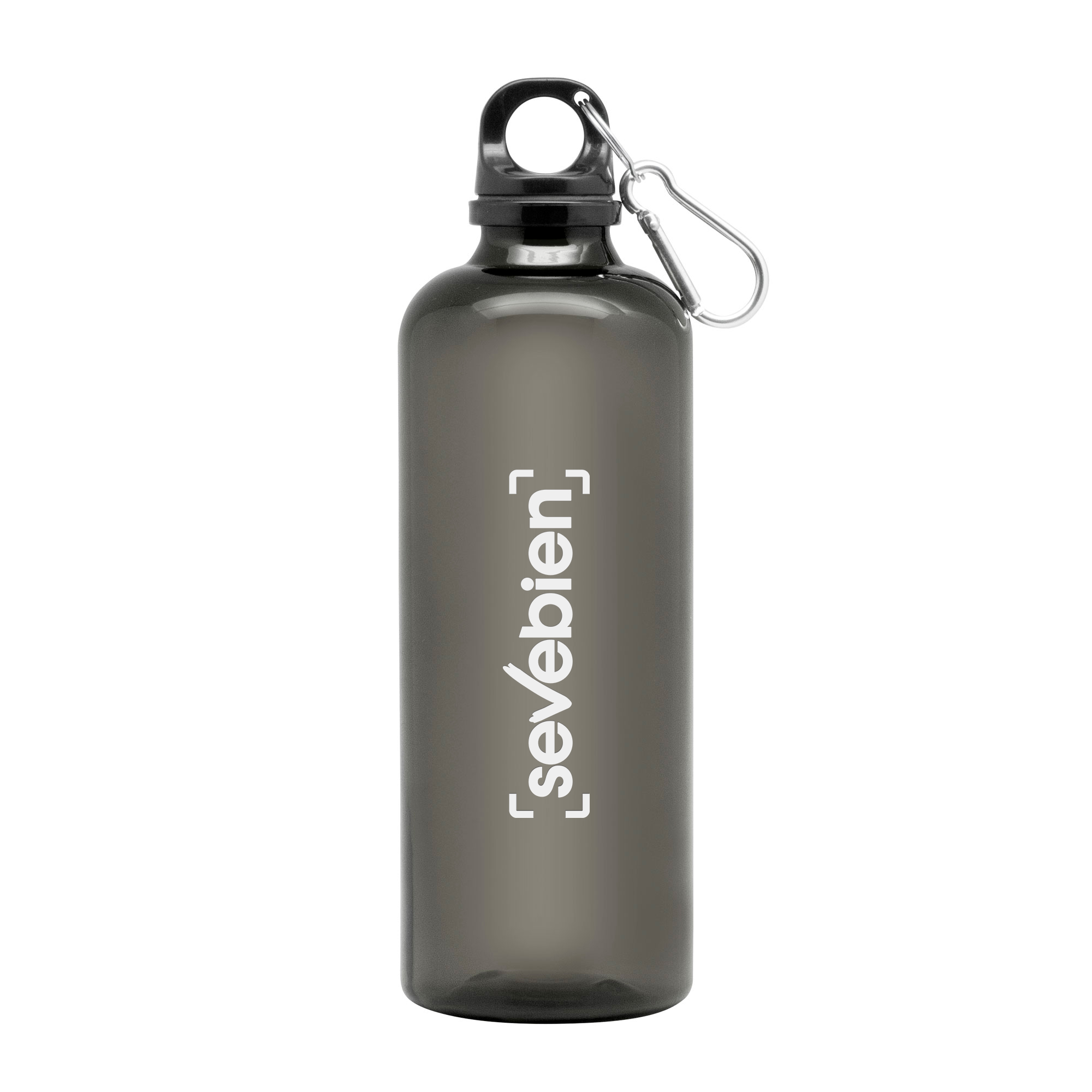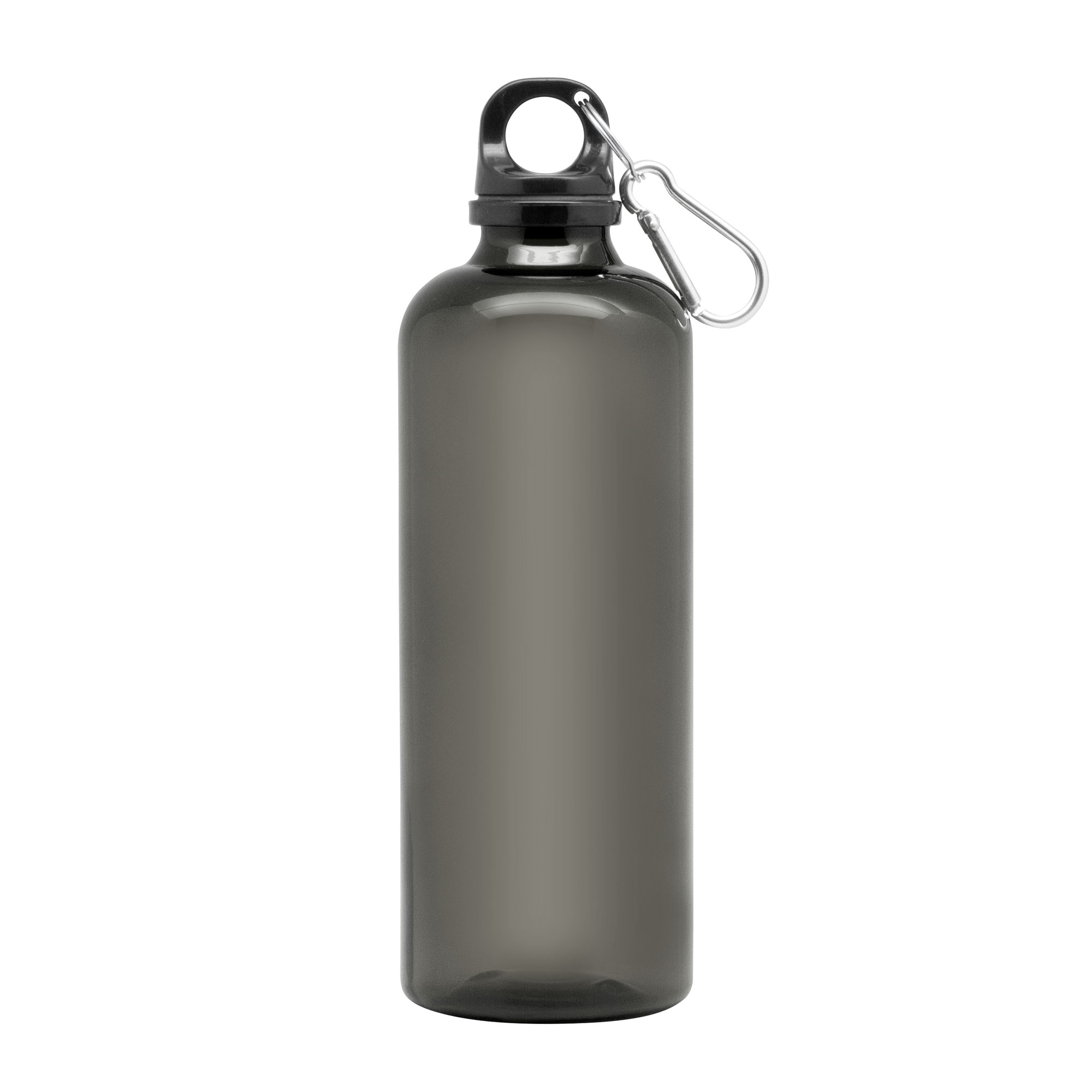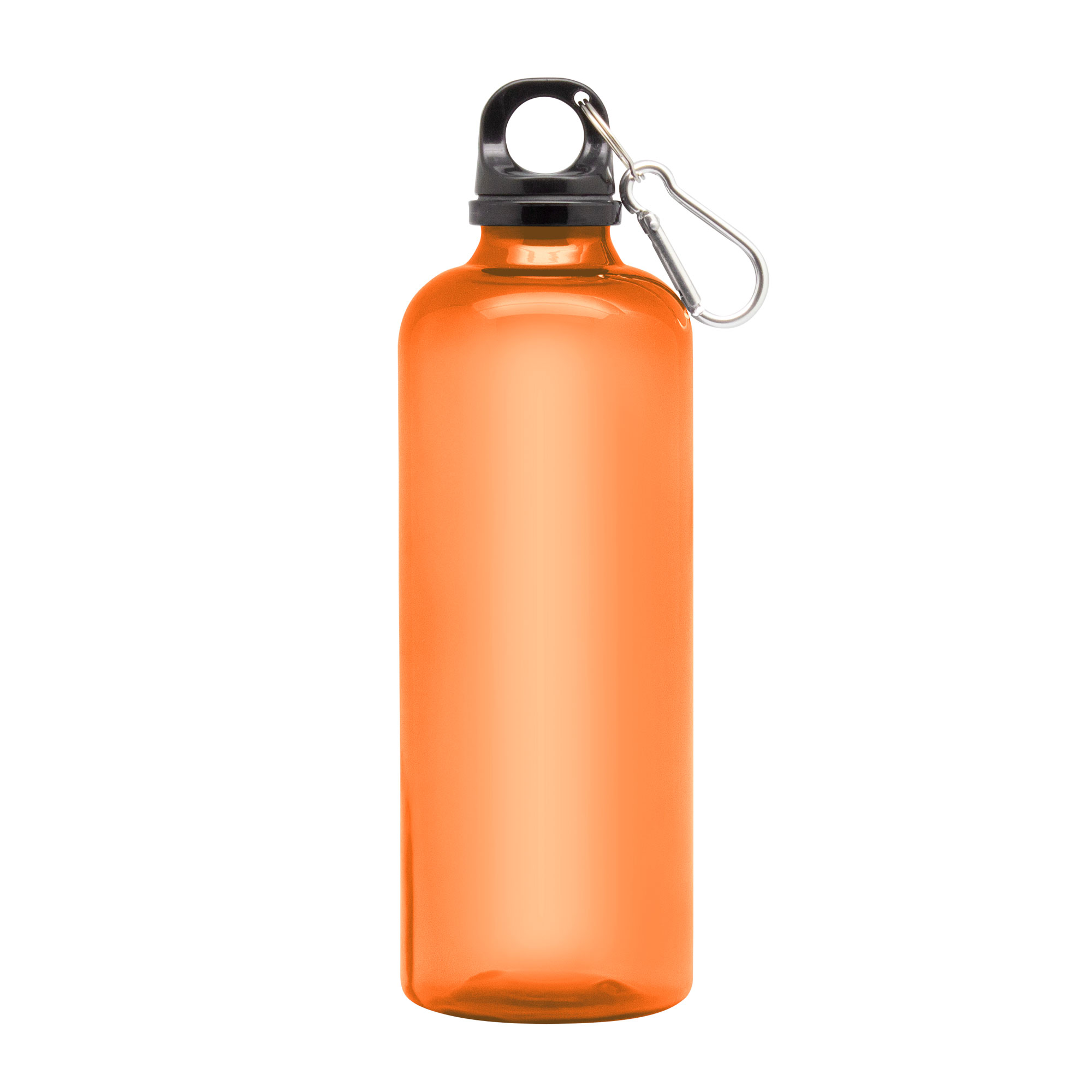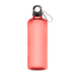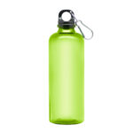 Ø 7 x 23 cm. Capacidad 600 ml. Material PET. Botella de plástico de colores translúcidos. Tapa a rosca en color negro con anillo de silicona y mosquetón de aluminio plata. Ultra liviana, pesa 60g.ATENCIÓN No utilizar con bebidas gaseosas ni líquidos calientes. / El manejo de este producto es delicado. / No exponer al sol y temperaturas altas por tiempo prolongado.